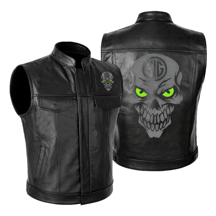 Sig Sauer Skull Print Leather Motorcycle Vest