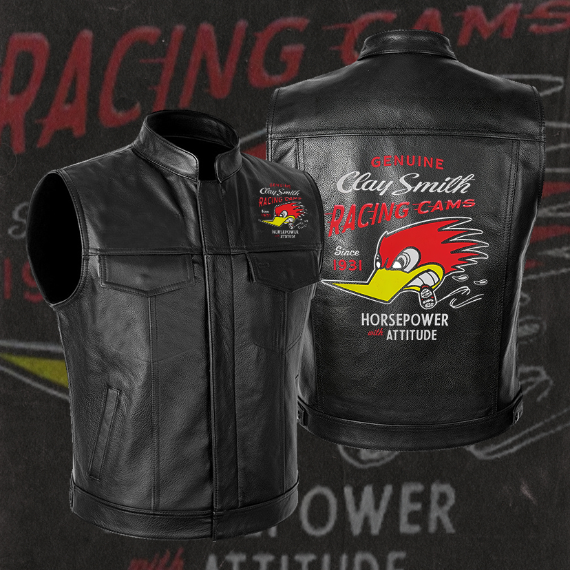 GENUINE CLAY SMITH RACING CAMS HORSEPOWER ATTITUDE Leather Motorcycle Vest