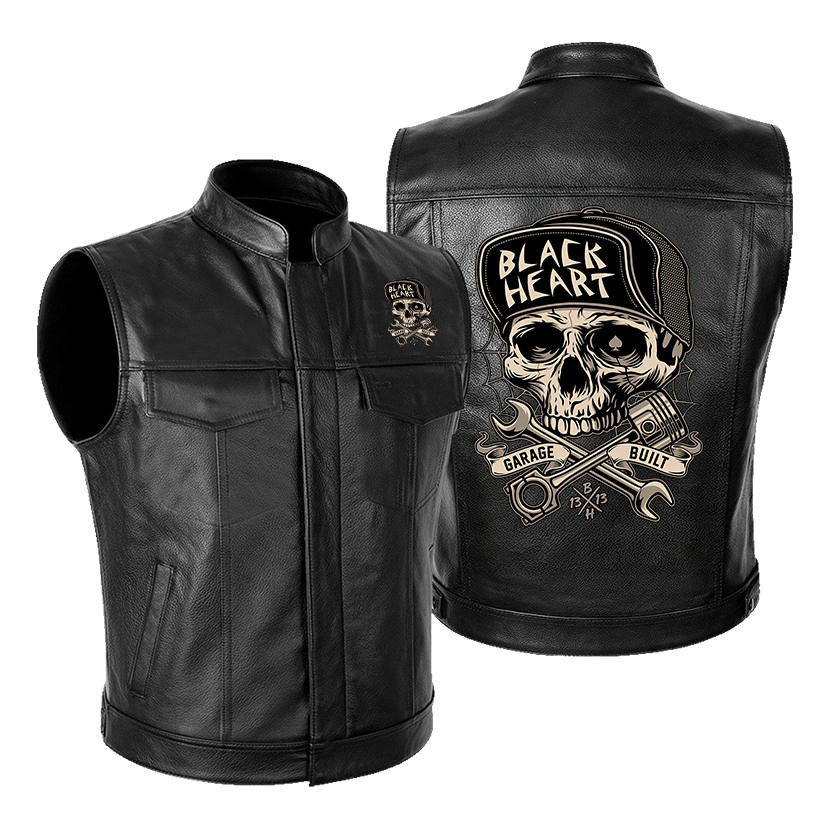 BLACK HEART Skull Leather Motorcycle Vest