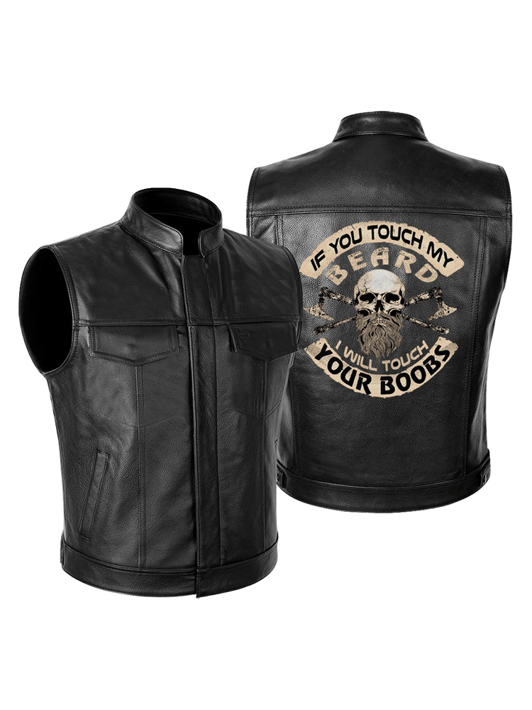 If You Touch My Beard I Will Touch Your Boobs Leather Motorcycle Vest