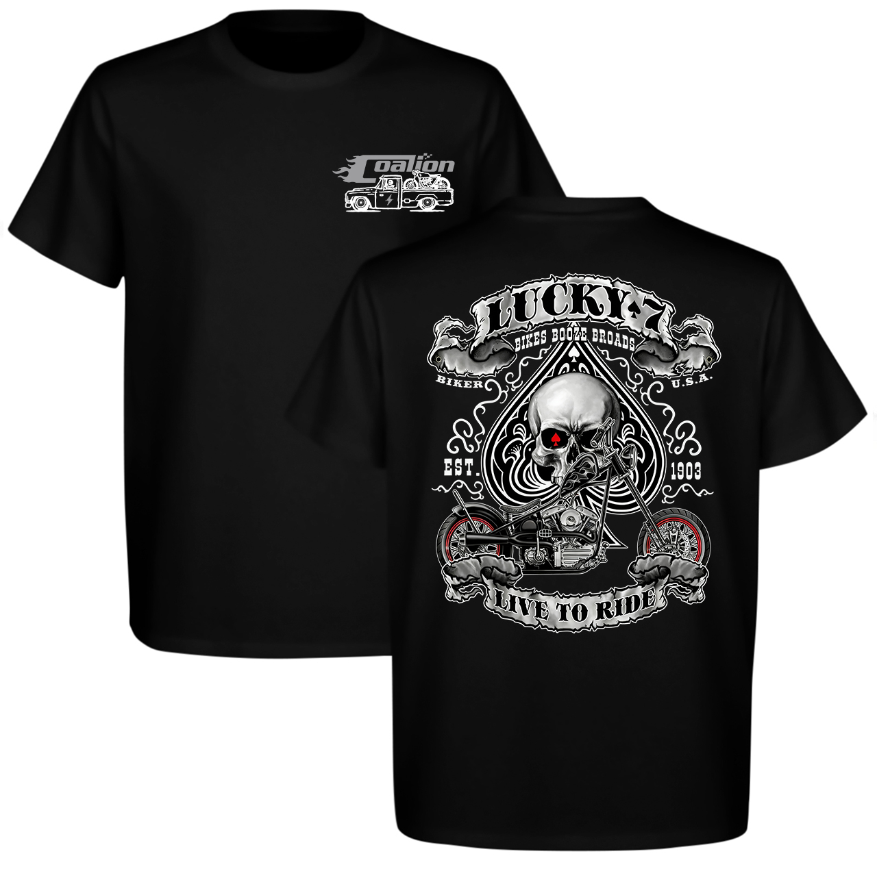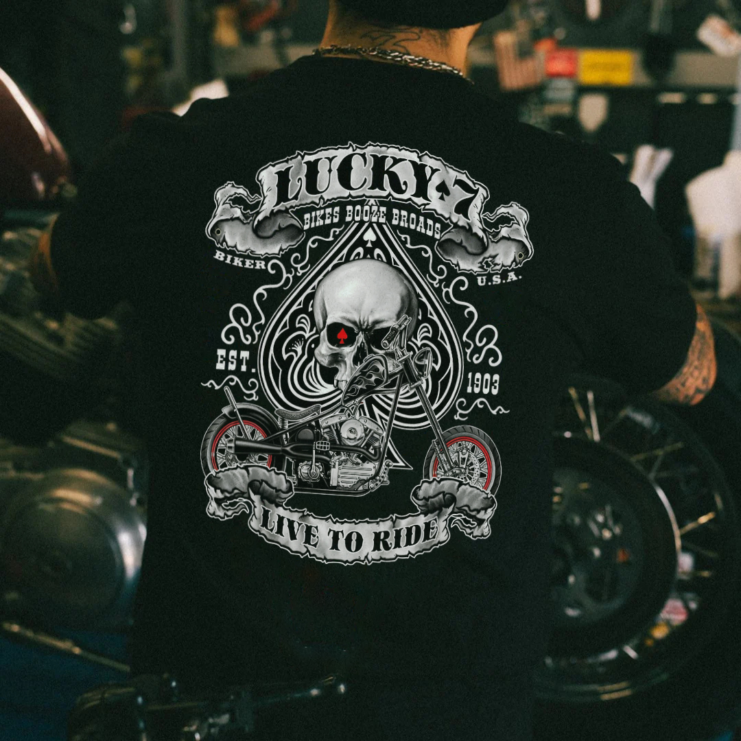 Lucky 7 Bikes Booze Broads Biker Live To Ride Printed Men's T-shirt
