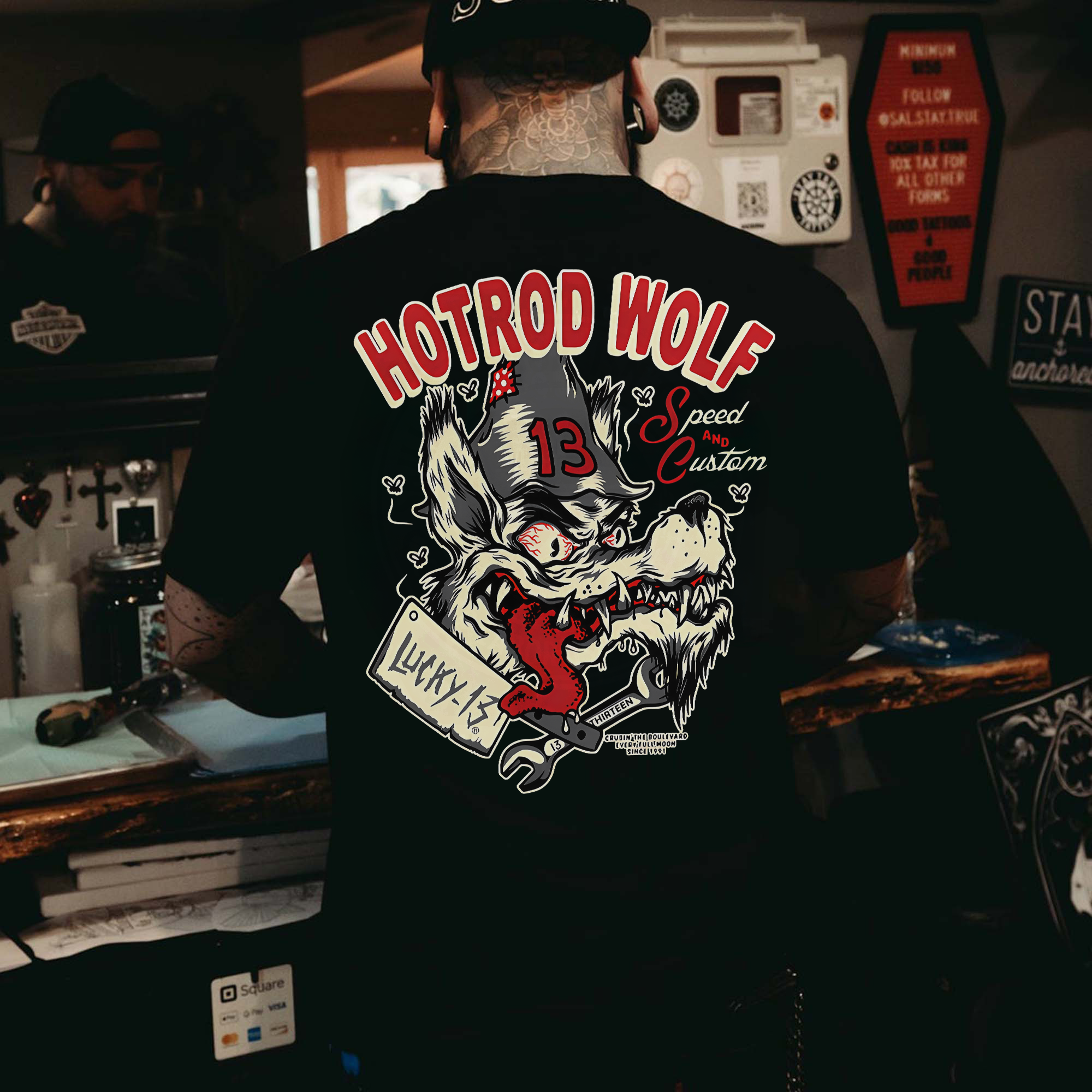 Hotrod Wolf Speed And Custom Lucky 13 Custom Hotrod Speed And Custom Est.1991 Printed Men's T-shirt