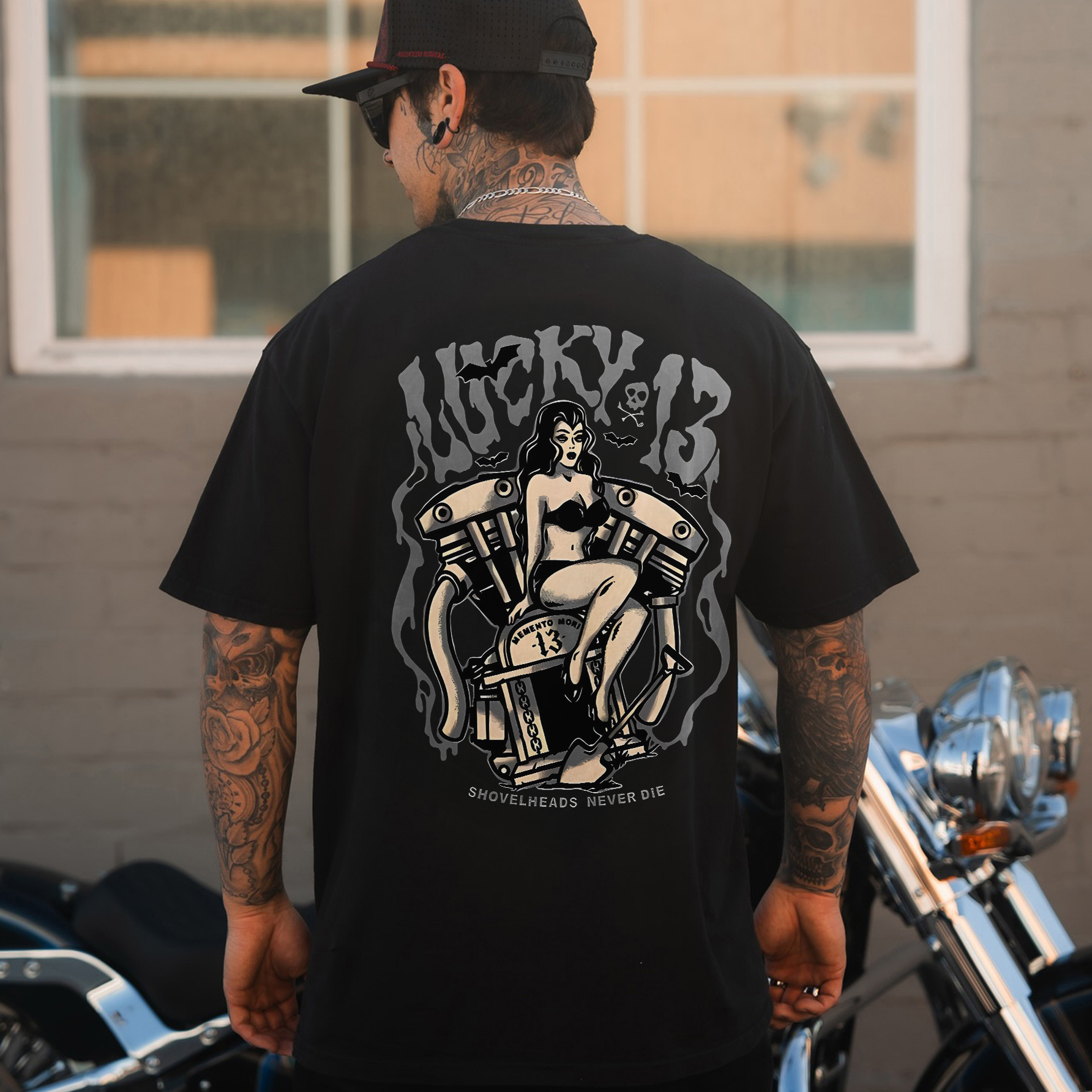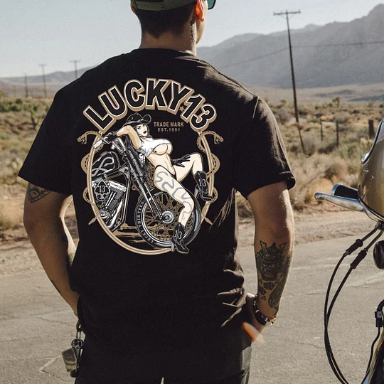 LUCKY THIRTEEN Motorcycle Black Print T-shirt