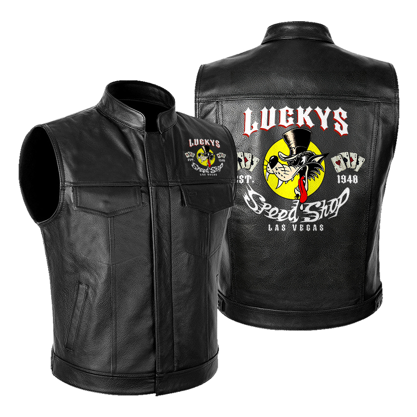 LUCKYS SPEED SHOP Wolf & Poker Leather Motorcycle Vest