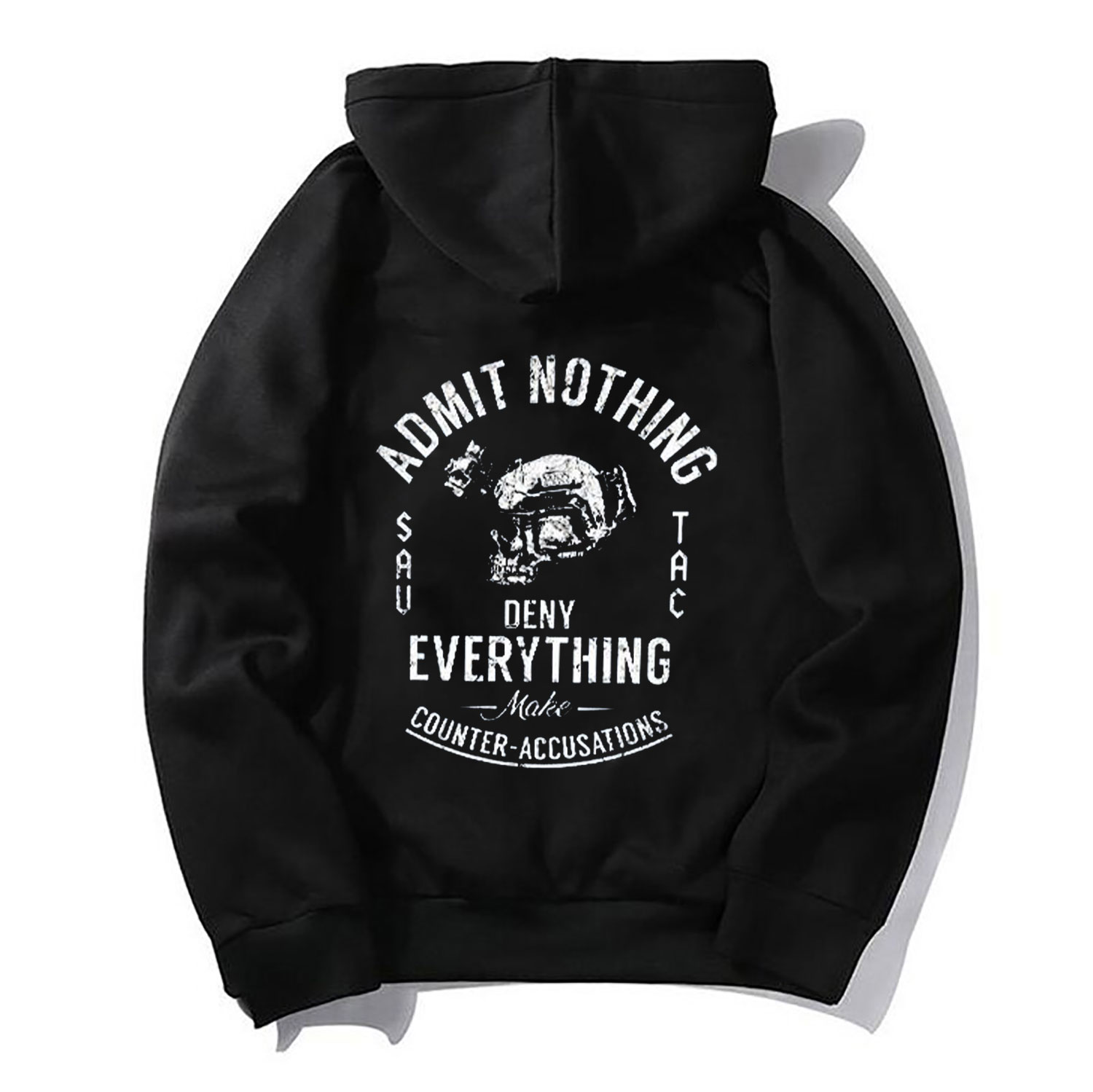 ADMIT NOTHING DENY EVERYTHING Skull Graphic Black Print Hoodie