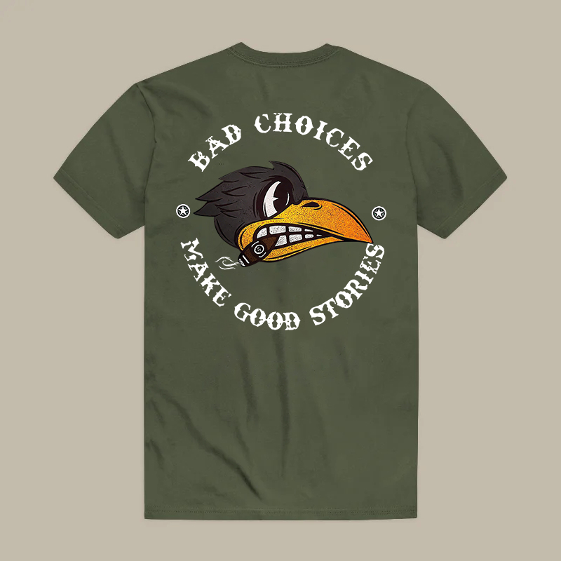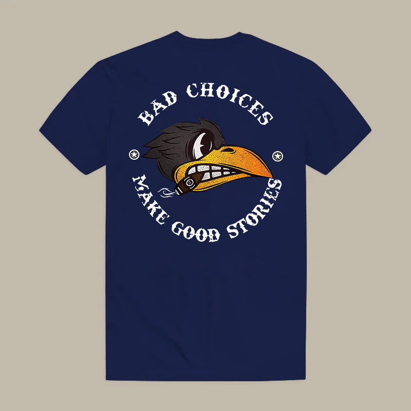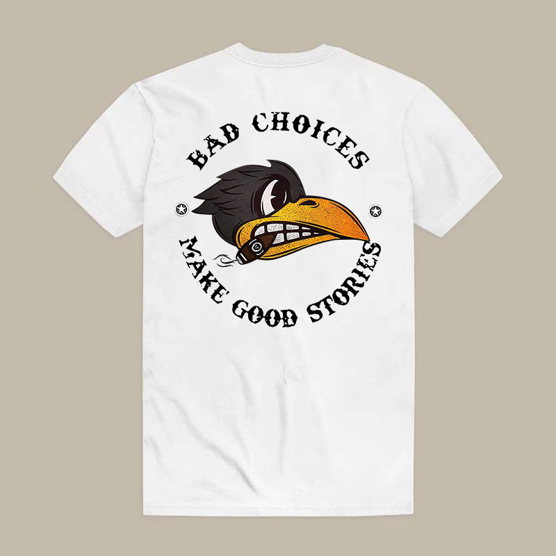 BAD CHOICES MAKE GOOD STORIES Smoking Crow Print Men's T-shirt