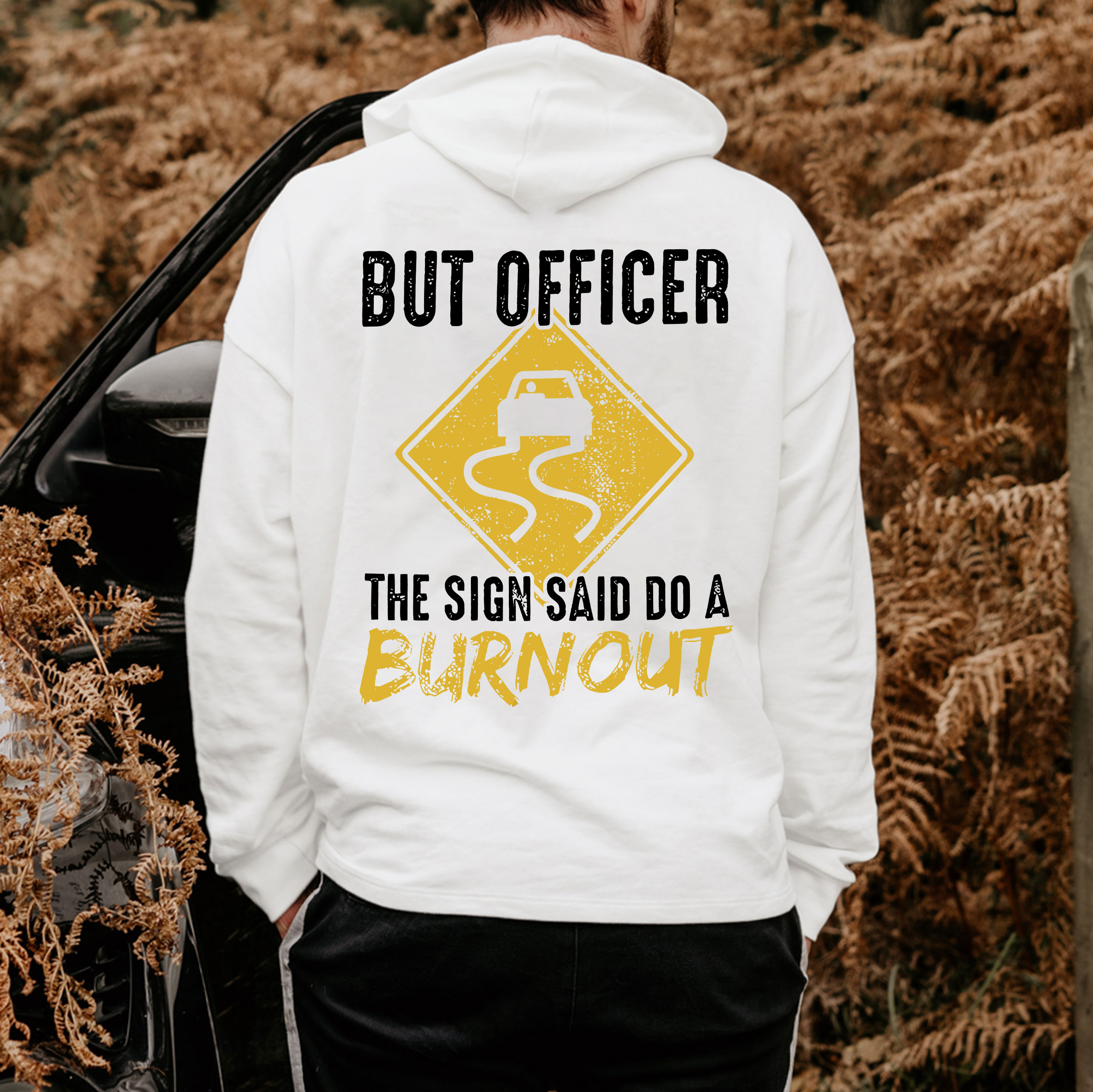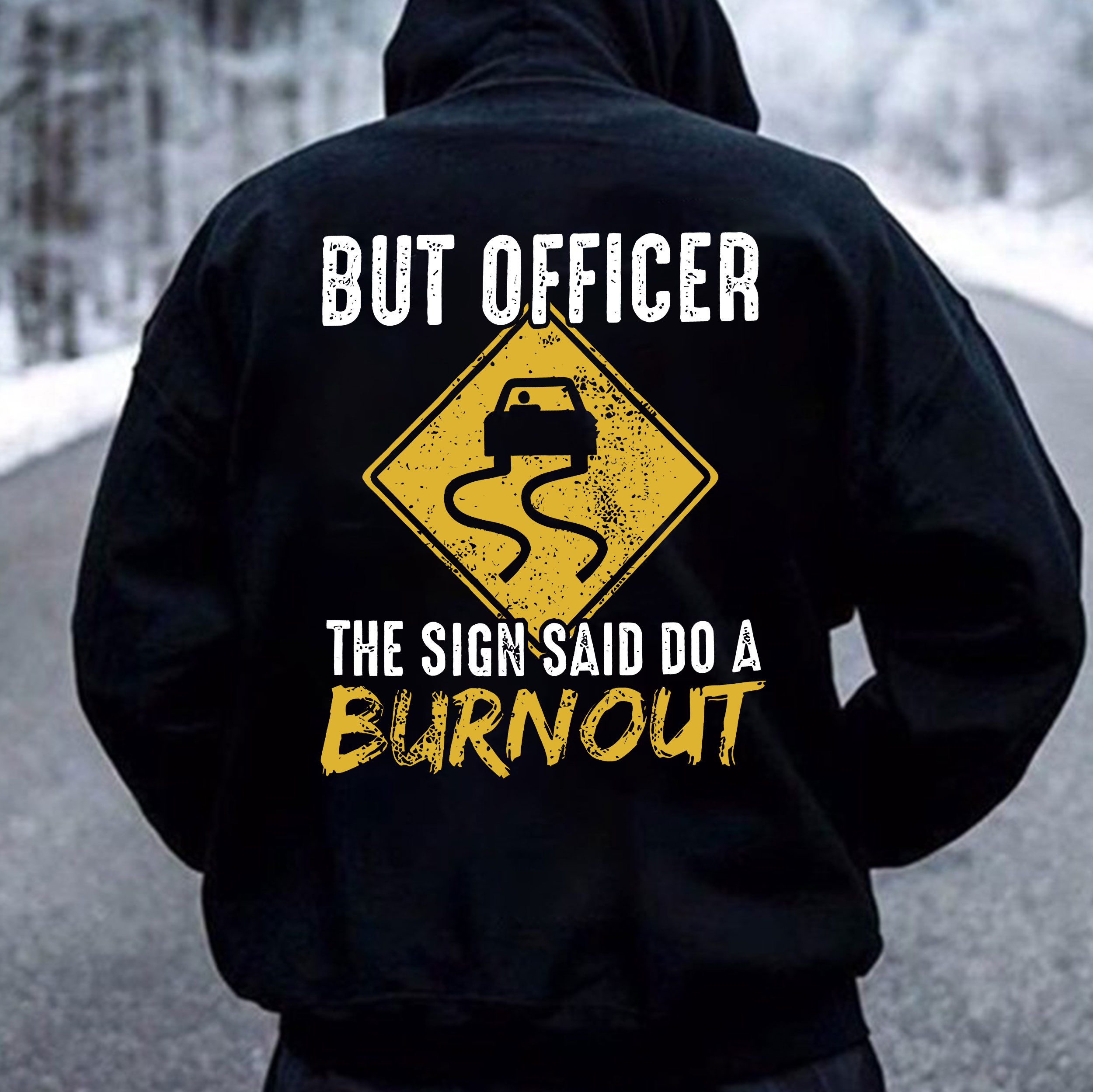 BUT OFFICER THE SIGN SAID DO A BURNOUT Road Signs Print Men's Hoodie
