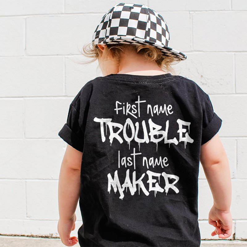 First Name Trouble Last Name Maker Print Children's T-shirt