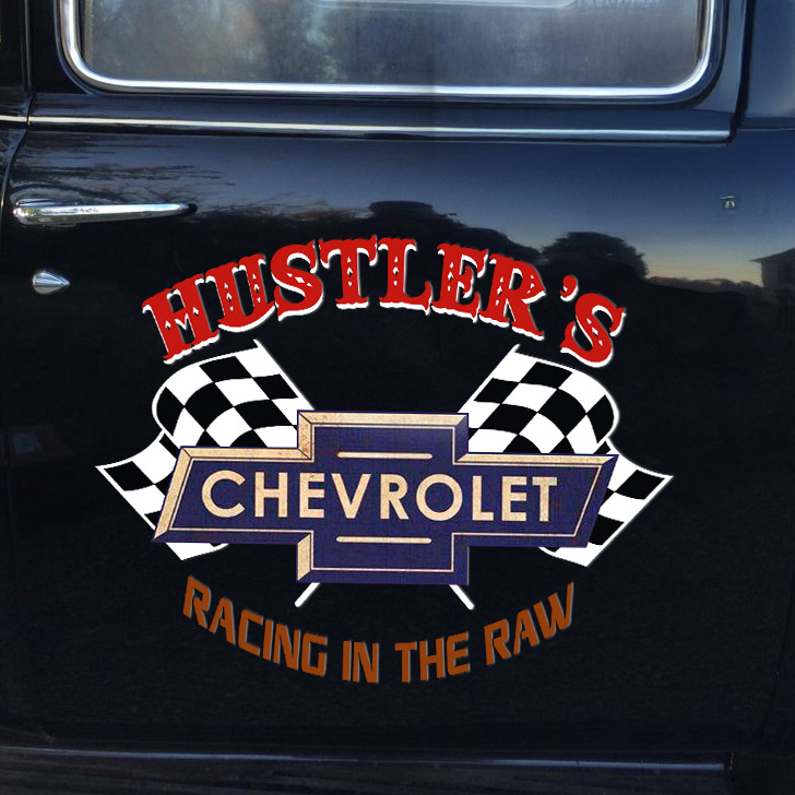 Hustler's Chevrolet Racing In The Raw Car Sticker