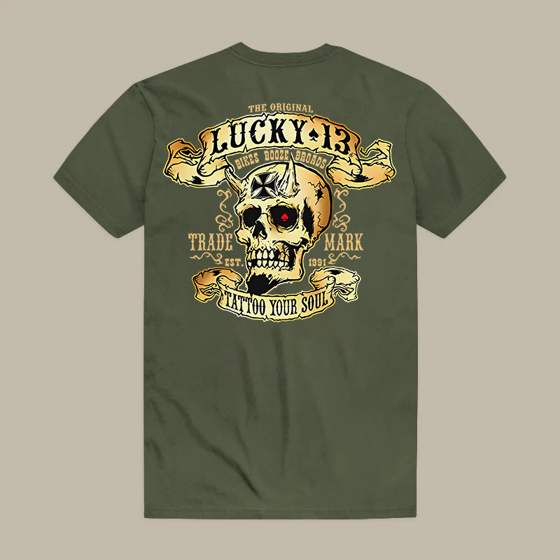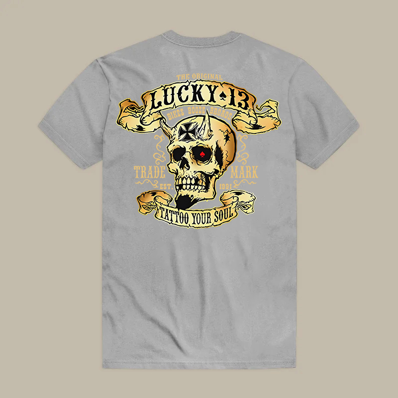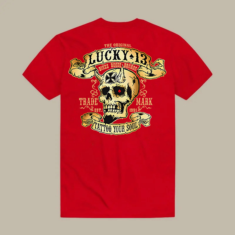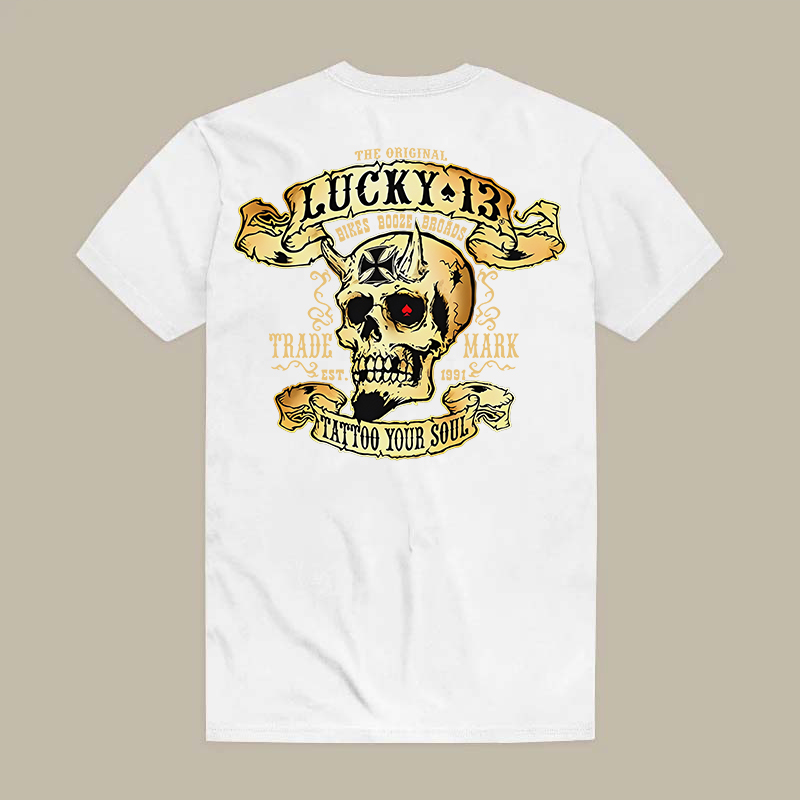 LUCKY THIRTEEN Skull Black Print T-shirt