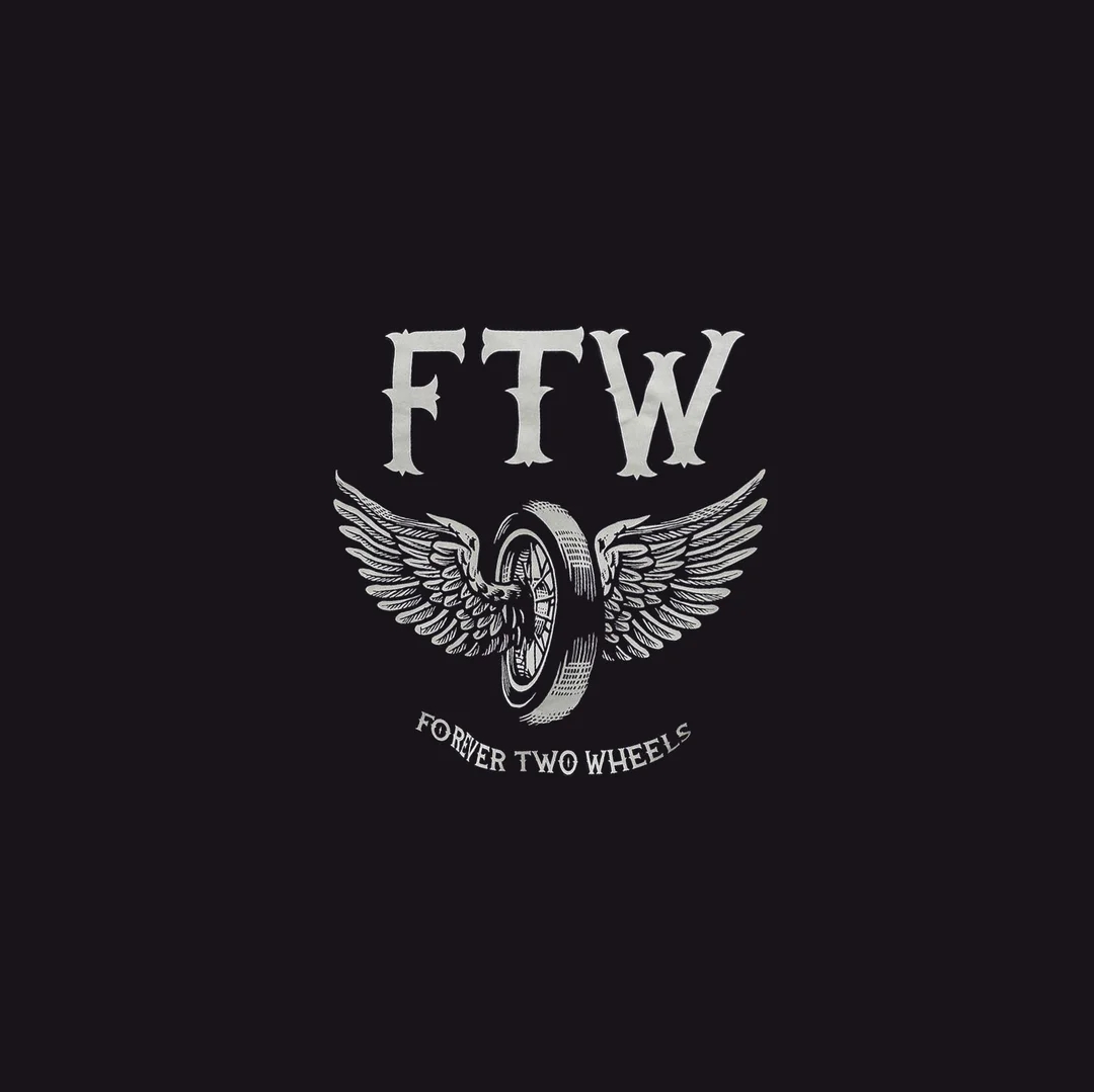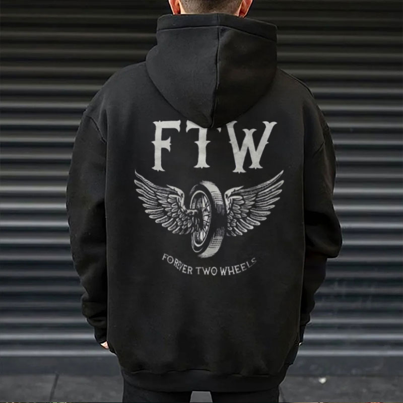 FTW Wheel with Wings FOREVER TWO WHEELS Black Print Hoodie