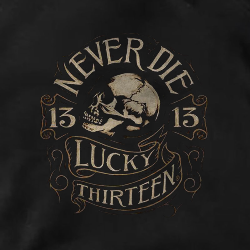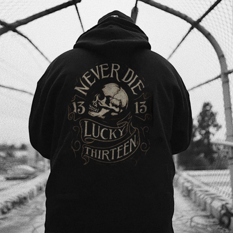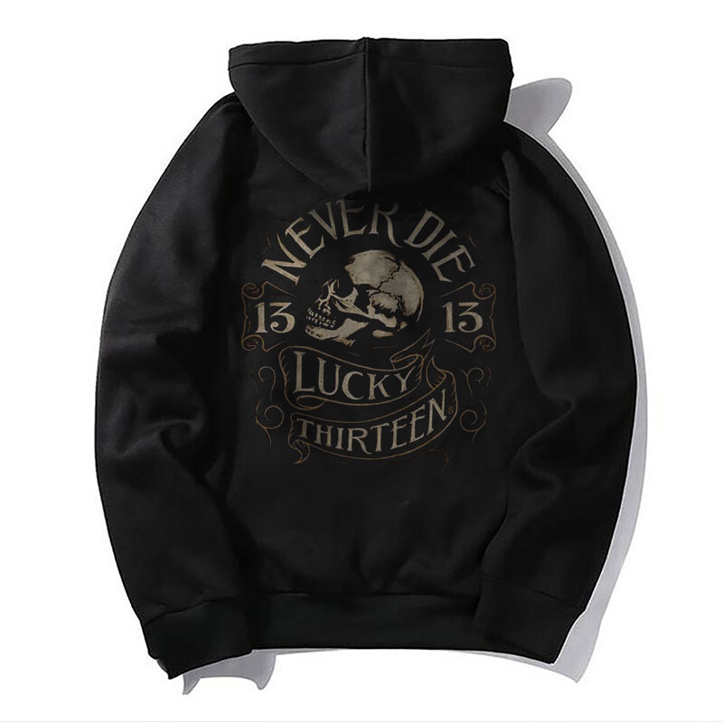 NEVER DIE LUCKY THIRTEEN Skull Graphic Black Print Hoodie