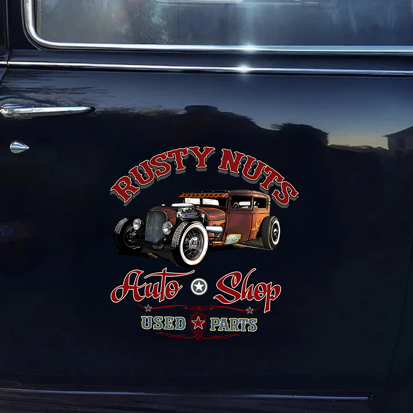 Rusty Nuts Auto Shop Used Parts Car Sticker