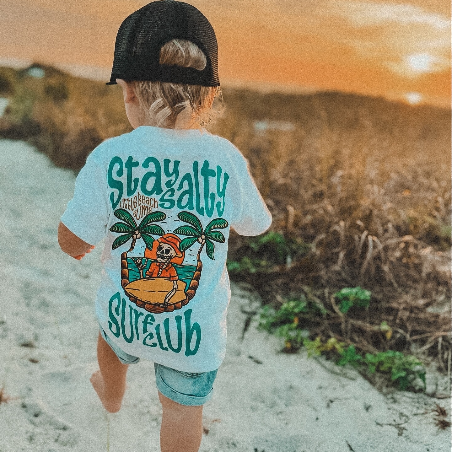 Stay Salty Little Beach Bums Surf Club Print Children's T-shirt