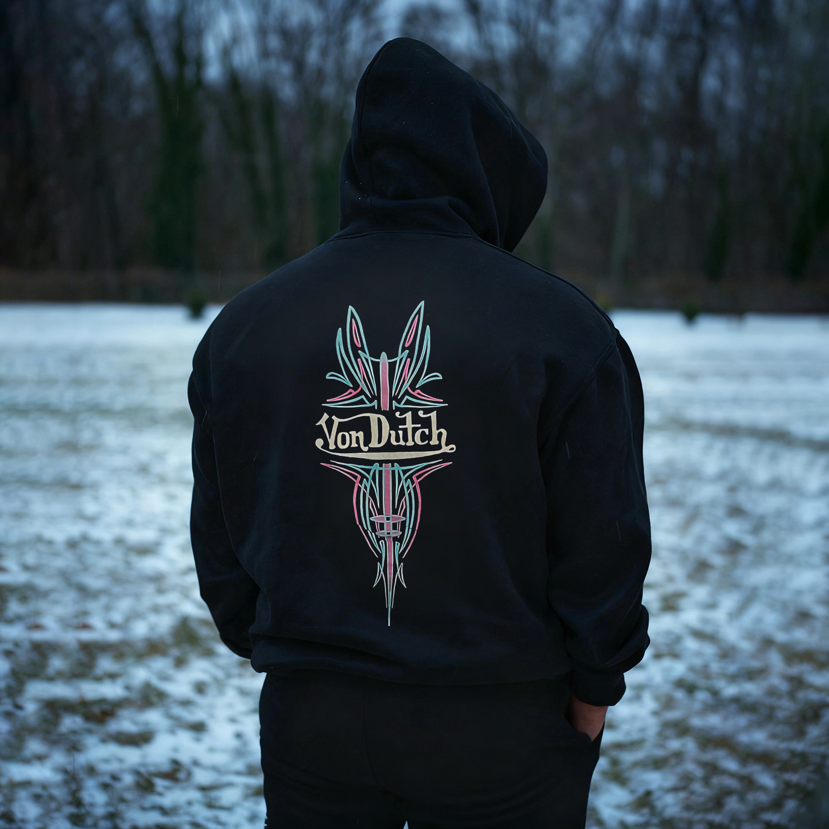 A soft and stretchy hoodie with a range of motion and comfort way beyond your typical cotton hoodie. Small batch garment dying and soft-to-the-touch water-based printing offers unique shades that make it more contemporary look.
